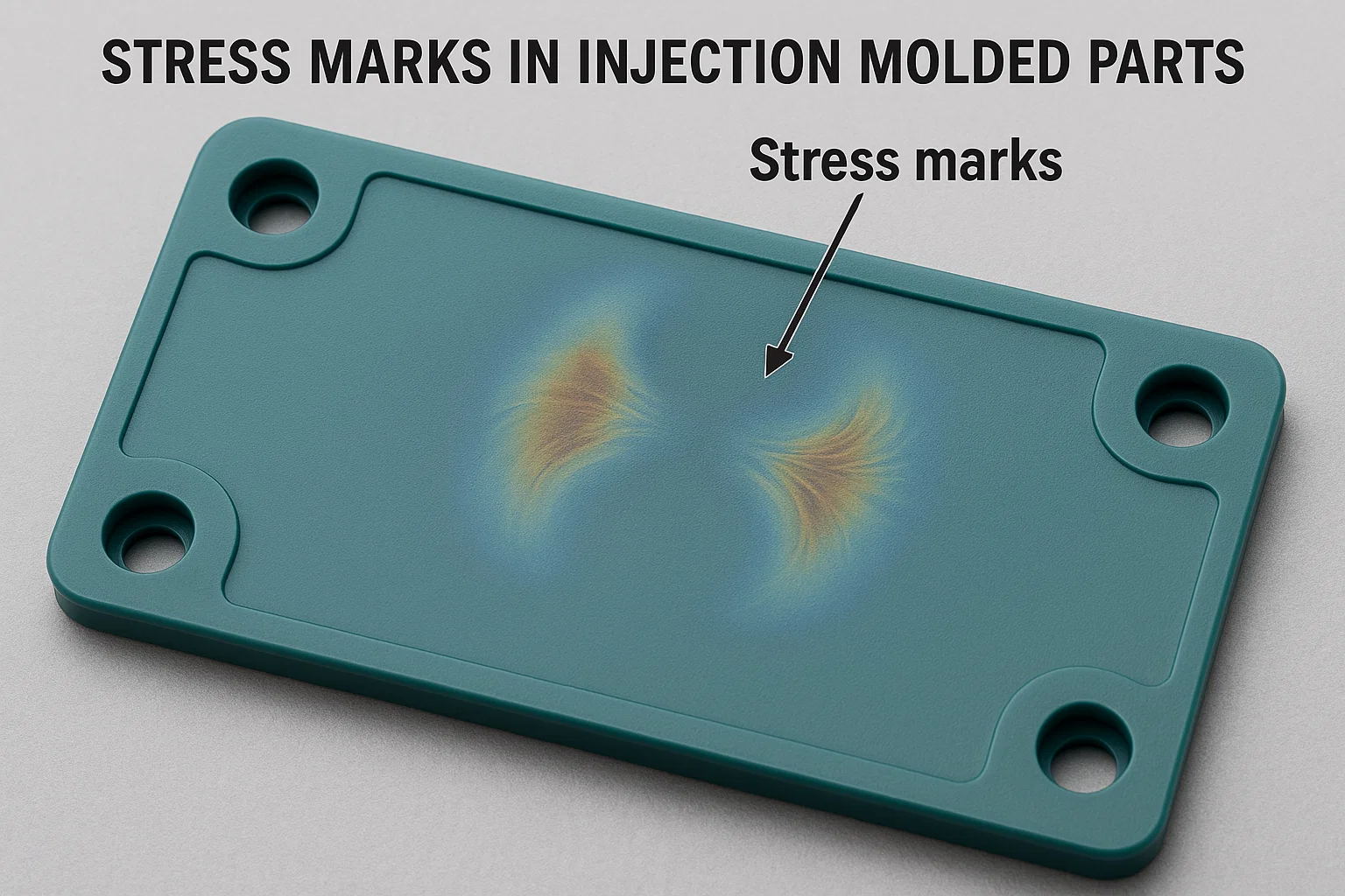 Tanda tegangan pada bagian cetakan injeksi adalah cacat permukaan yang disebabkan oleh konsentrasi tegangan lokal, muncul sebagai tekstur mengkilap atau tidak merata. Lokasi umum meliputi: