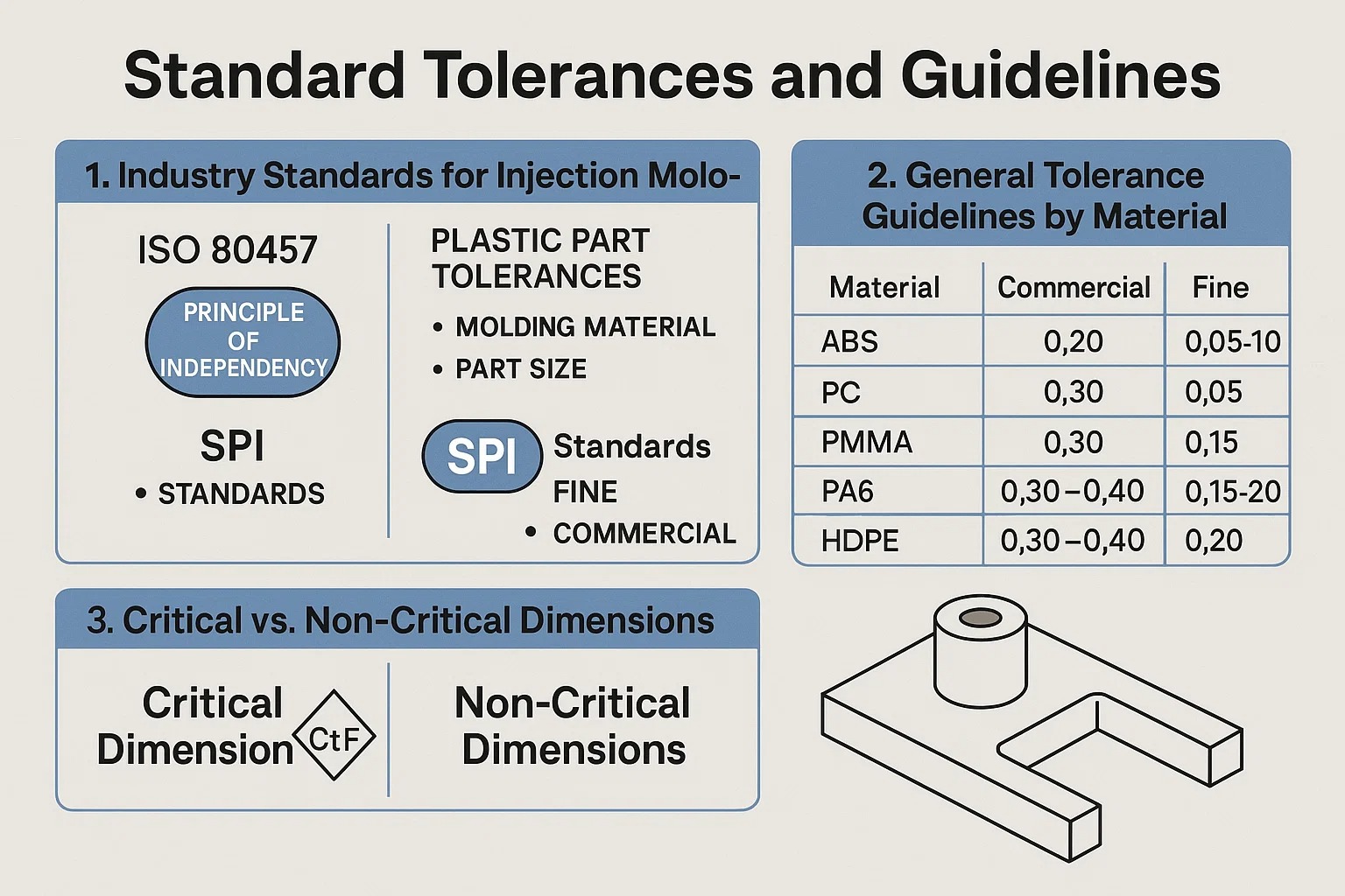 Karena dimensi yang “sempurna” tidak mungkin dilakukan, industri bergantung pada standar yang ditetapkan untuk menentukan apa yang dapat diterima. Standar-standar ini memberikan bahasa umum bagi para insinyur dan pembuat cetakan untuk menyepakati ekspektasi kualitas sebelum cetakan dipotong.